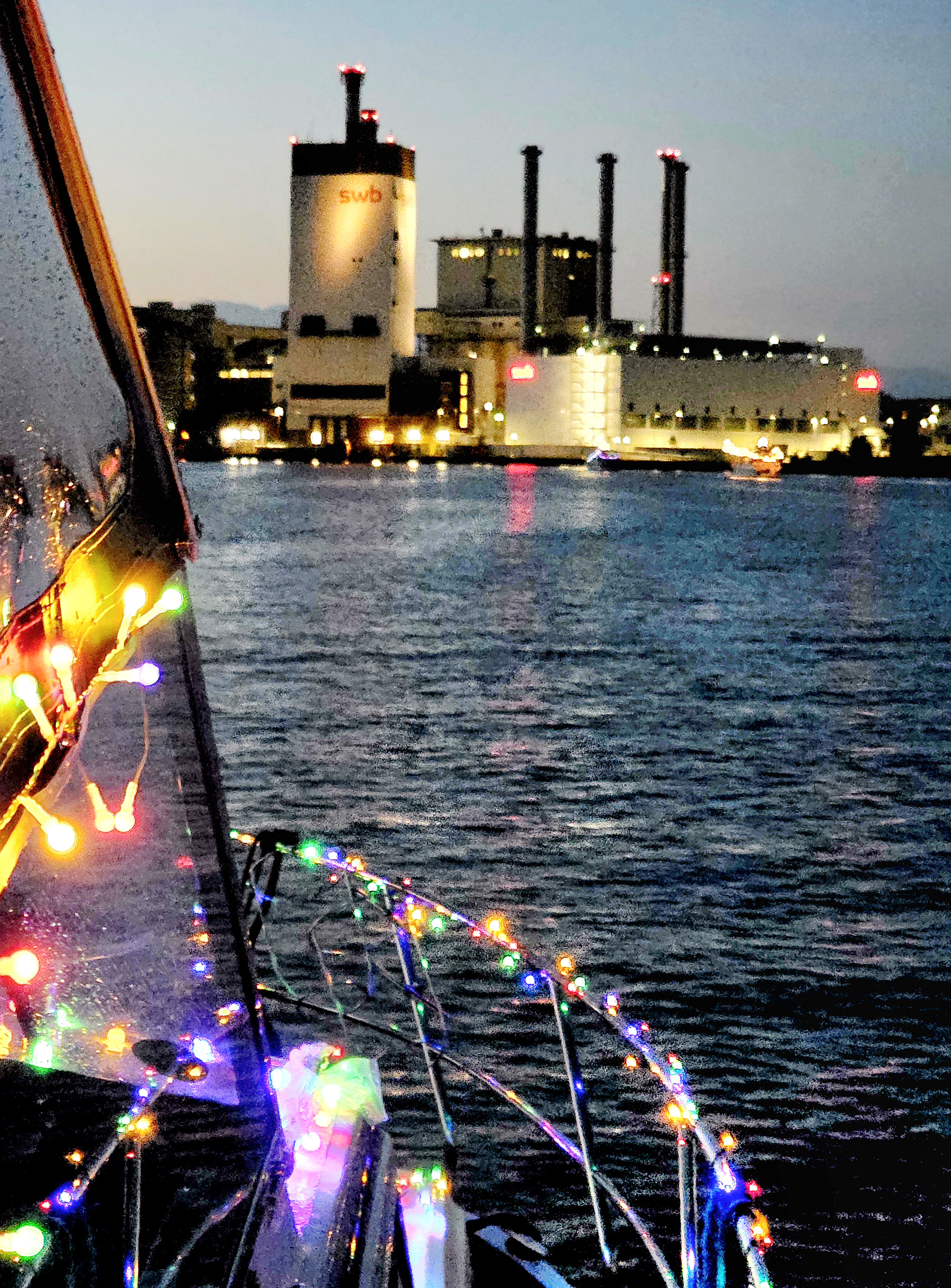 Auf halber Strecke stießen wir auf unsere leuchtenden Kolleginnen und Kollegen vom Wassersportverein Tümmler – die Partyflotte war komplett!
